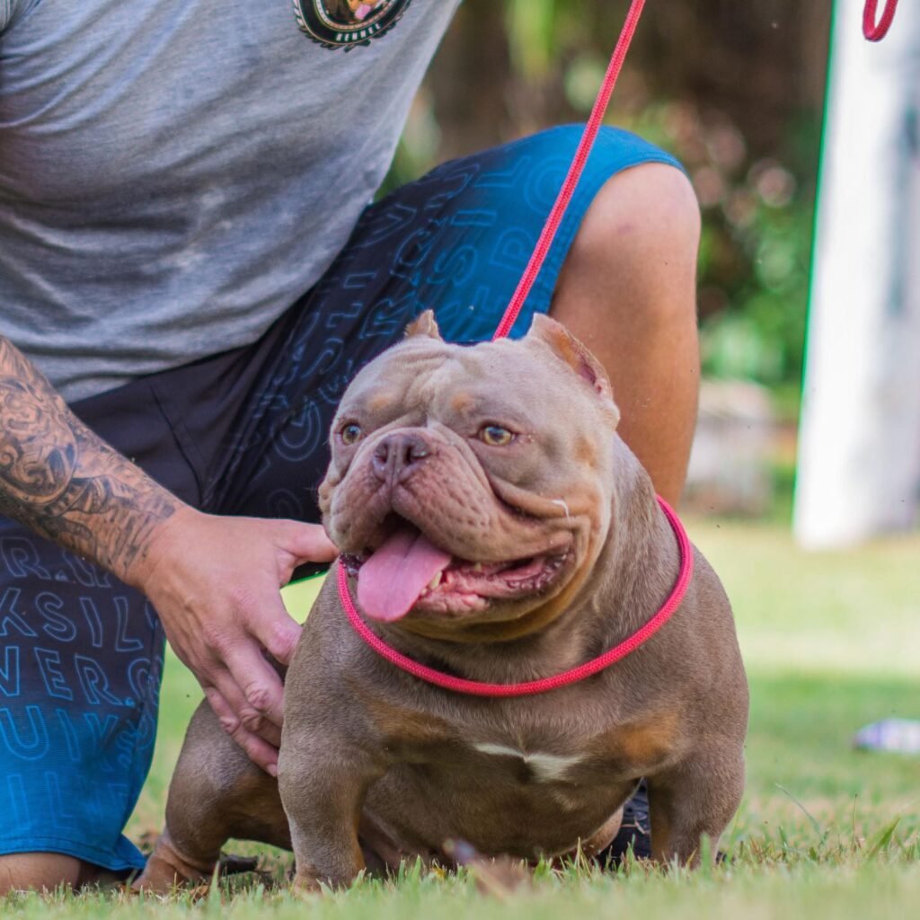 - É a maior versão do American Bully, com porte grande e musculoso.